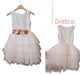 ABITO DA CERIMONIA RAGAZZA, MIMILù IN TULLE E PIZZO LAVORATO SUL CORPETTO, NEL COLORE LATTE, MODELLO ASIMMETRICO PIù CORTO DAVANTI E PIù LUNGO DIETRO, RIVESTITO ALL' INTERNO IN FODERA DI COTONE, CON SOTTOGONNA IN TULLE APPLICATO, CON SCOLLATURA A GIRO COLLO, GONNA A BALZE IN TULLE, CINTURA IN TULLE NEL...
